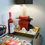 A fully furnished kitchen is featured with a microwave oven, a fridge, and a toaster, as well as coffee and tea making equipment, ensuring a better dining experience.